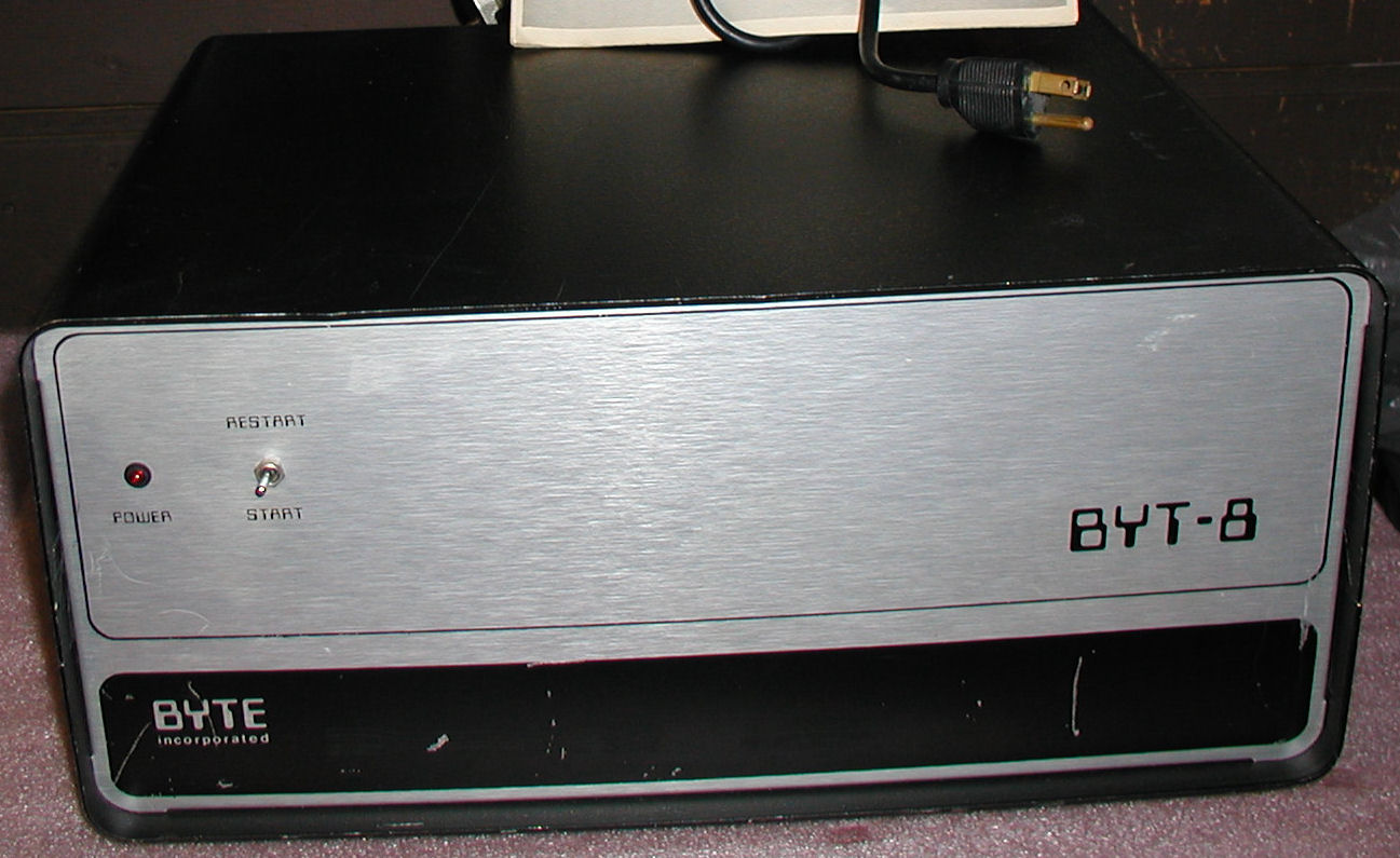 MS DOS 1.25 was sent to Commodore for use with their B Series systems with a 8088 co-processor board. There were few if any systems sold with the co-processor board, but a few do exist, including the one in my possession. I have found a way to migrate a copy, and here it is: Download MS DOS 1.25 for CBM B-256X and CBM-128X If anyone has a Commodore B with an 8088 co-processor download this file and let me know if it works. (Or just contact me for a disk copy) I have also uploaded some useful programs for any B series with an 8050 or SFD-1001 drive attached: Download B utilities here Here's how I would restore, you'll doubtless have different hardware, but... 1. Download the files to a formatted to 720K IBM diskette BOOTMS.PRG MSDOS.PRG If they get renamed along the way remember these original file names 2. Boot a C64 and two 1581 drives, and load WCOPY+ by CMD. Copy the files from the IBM-format 720K disk to a Commodore-formatted disk. I happen to have set one 1581 drive to = 8, the other = 10. (9 is a 1571 drive) 3. Disconnect the 1581 assigned to drive 8 and turn off the computer 4. Attach a serial to IEEE converter and hook up an 8050 drive as drive 8. 5. Use WCOPY+ to move the files from the disk created in step 2 above to an 8050-formatted disk in drive 8,0 on the 8050 drive (or use an SFD-1001) to format a disk: header "msdos",d0,i01 [enter] 6. Disconnect the 8050 from the C64, and attach to the CBM 128-80X or CBM 256X. load "BOOTMS",8,0 If it works, you'll get a DOS prompt...on a Commodore! Note the link above, there are pictures of the boot screen. Click for updates and pics Byte BYT-8 S-100 Computer![]() Click Image for larger version