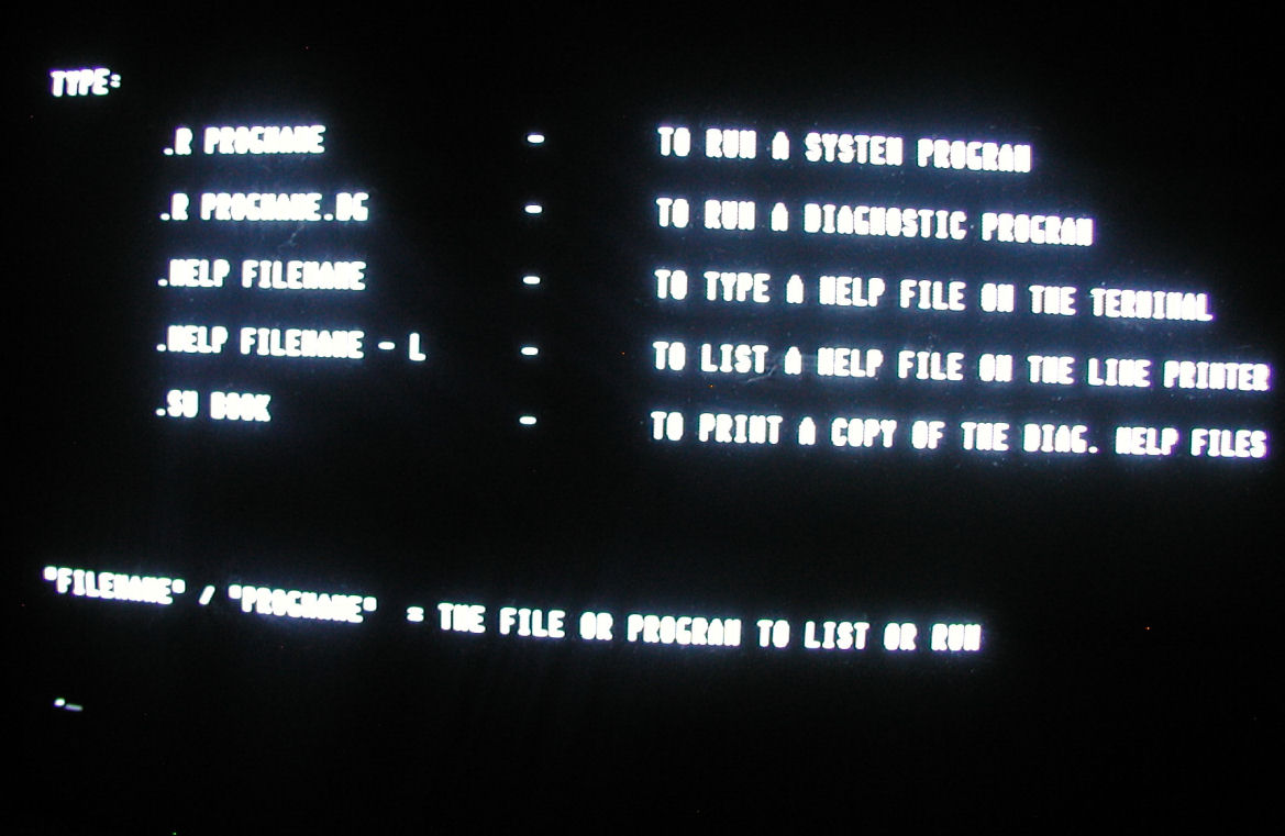 The prompt used by OS/8 is the period ( . ) OS/8 has to partition RK05 disk packs, so you need to remember that when trying to run a program. For example, to run a directory of the A partition in drive 0 type the following command: .DIR RKA0 [return] The B partition of drive 1 would be: .DIR RKB1 [return] Reply |