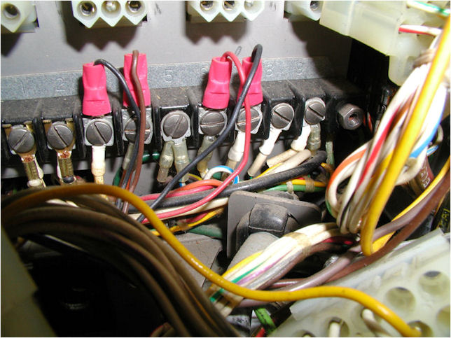 ![]() Telebyte Model 65A RS232 to Current Loop Converter. This is what converts RS232 signals to current loop signals. To the left is the cable coming from the computer. To the right are wires that attach to the terminal strip of the teletype (see below). Click image for larger view.