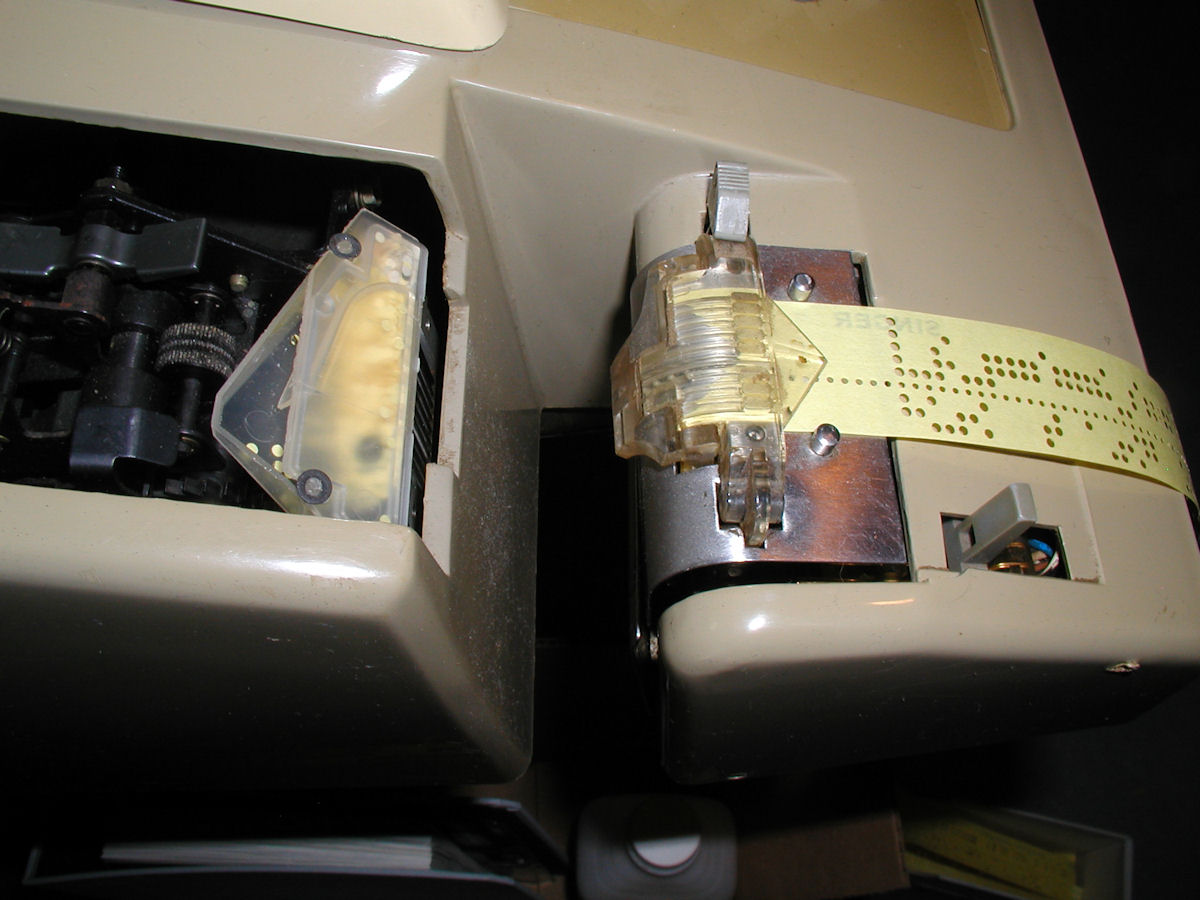 ![]() Don't worry if it's not flush to the front, just make sure the tape reader is aligned to the back as the tape feeds in. Pictured above is "almost right". I brought the reader down a hair after this picture was taken. Click image for larger view.