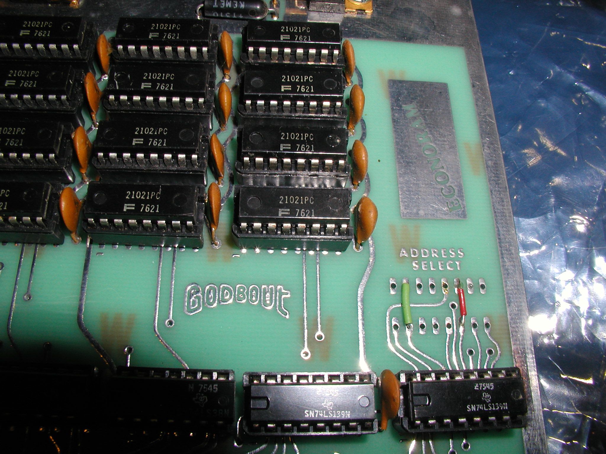 ![]() Pictured here is the first of Godbout's highly successful line of S-100 bus ECONORAM RAM cards. This particular 4K card is still fully functional. Click image for larger view.