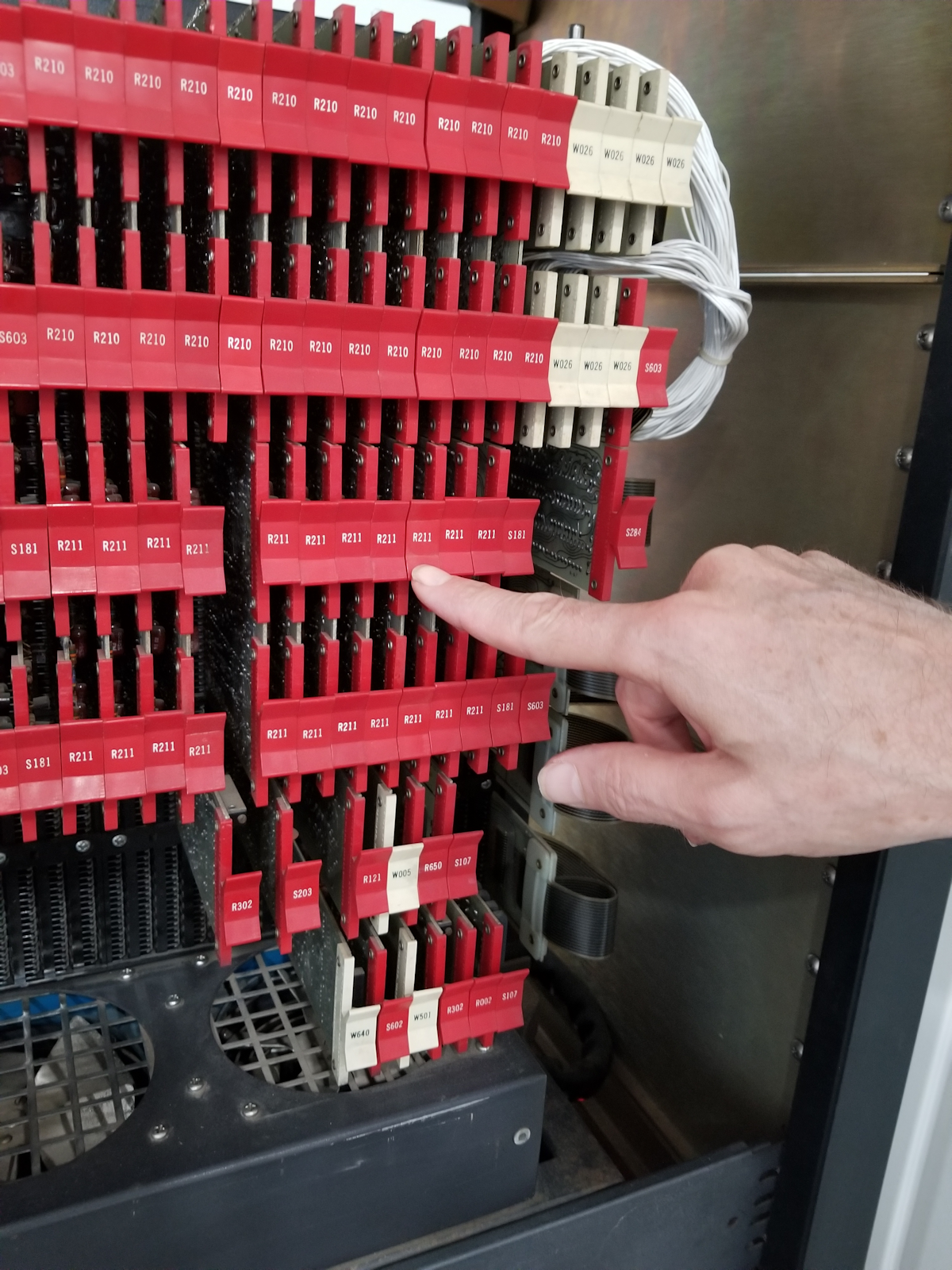 ![]() Bit accumulator 7 - R210 was found to be faulty. Note that the R210 in the photo is not part of the memory buffer row, so one should start counting 2nd from the right.