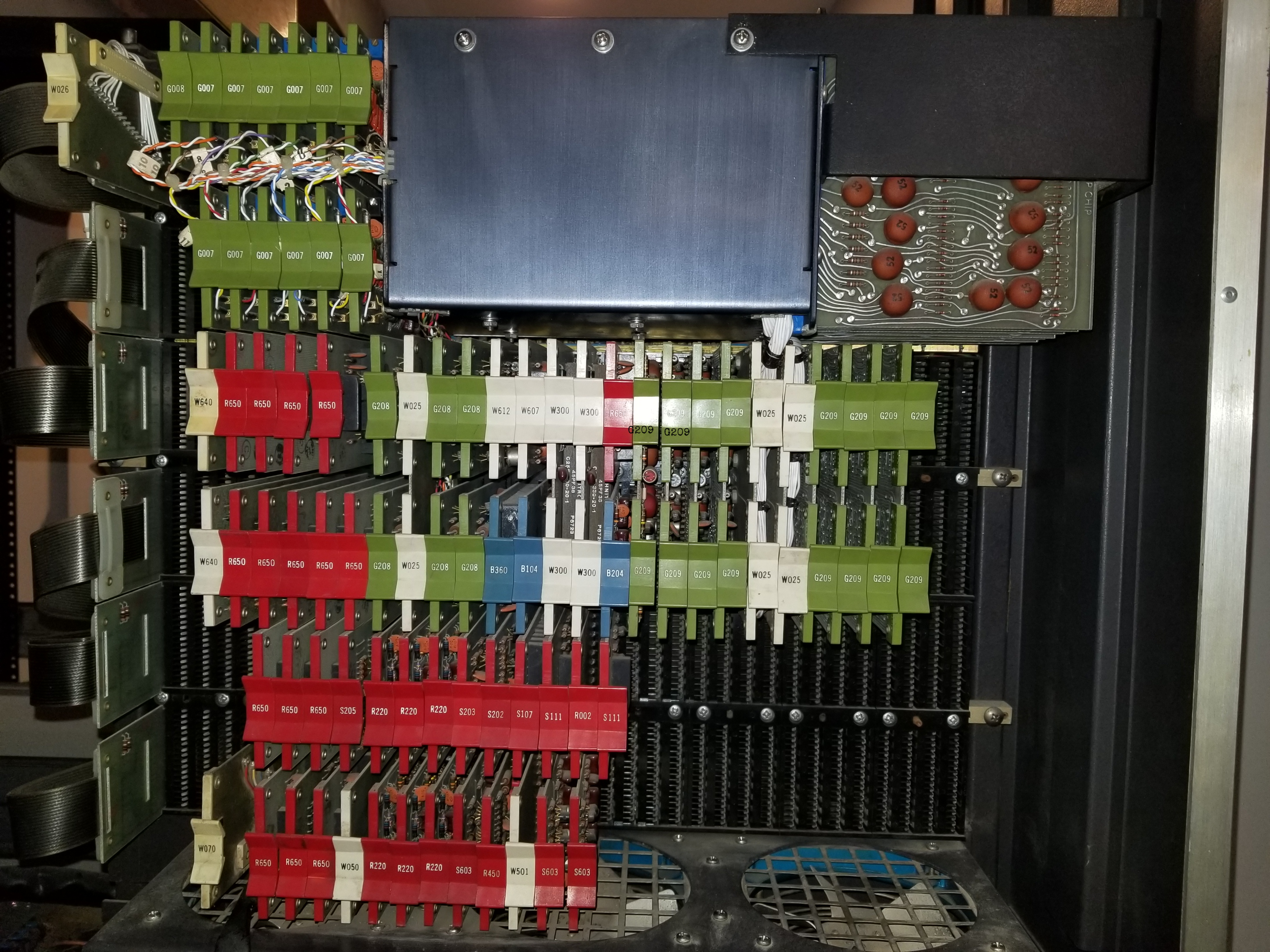 It's likely there are numerous faulty or marginal diodes and maybe some transitors that need to be replaced. Worst case, we'll improve the electrical state of the computer and perhaps fix the intermittant memory issues with a shotgun approach of going through all diodes on every FlipChip board. ![]() Backside of the same flipchip logic card.