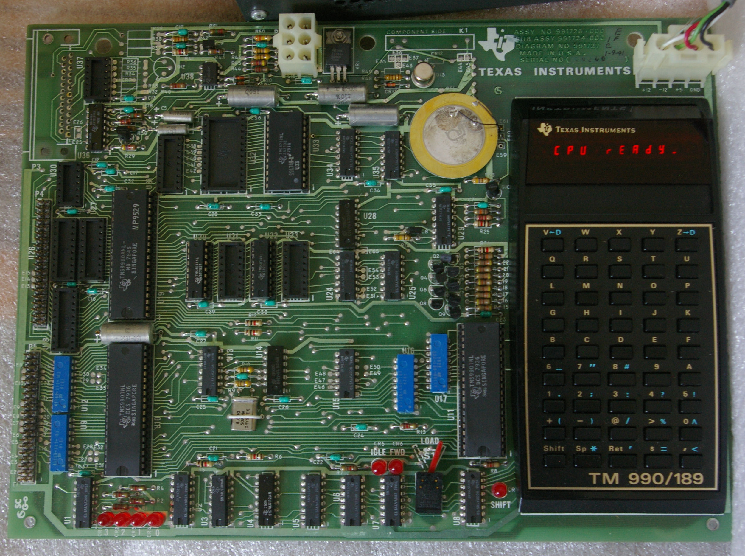 ![]() The TM990/189 looks like a TI 59 calculator stuck on a large computer board. Click image for larger version.